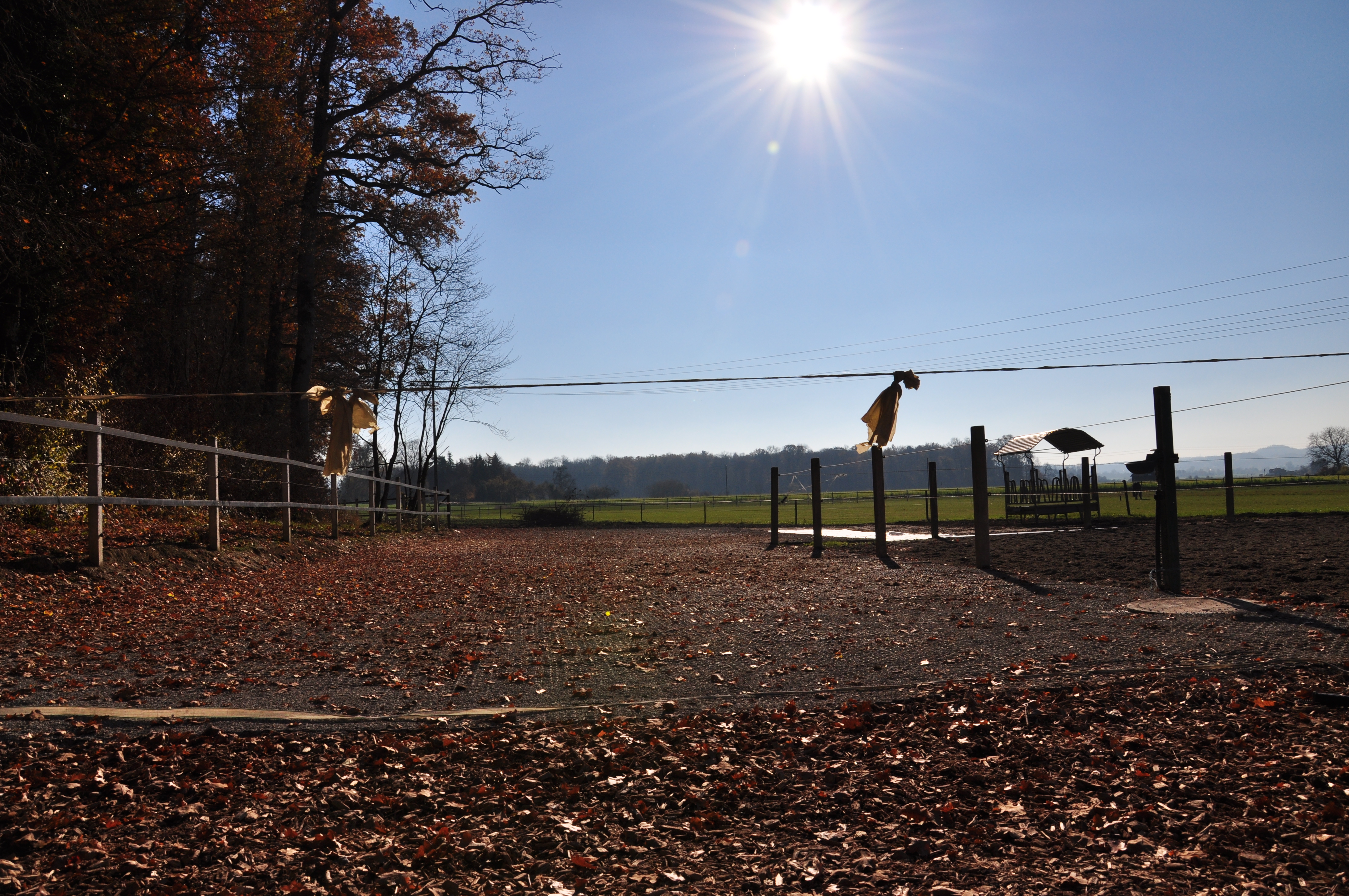 - schönes Ausreitgelände (direkter Anschluss an den Wald ohne Straßenüberquerung)